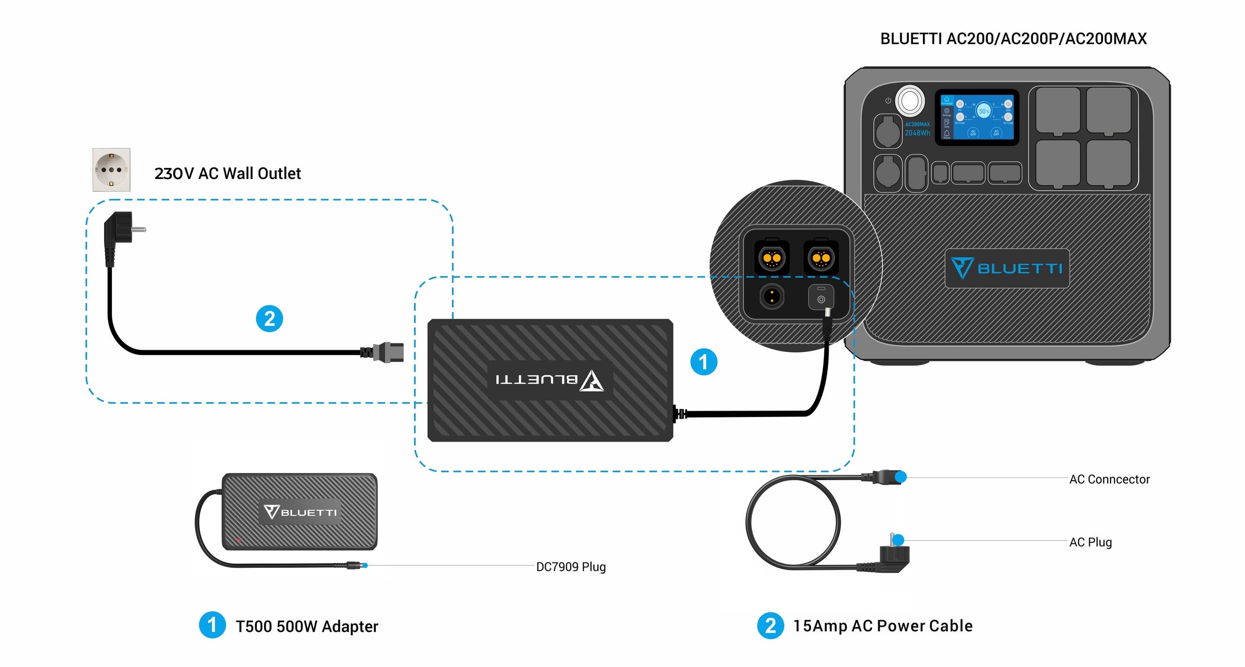 AC200P/AC200/AC200Max (TAdaptor T500 AC & XT90 ke Kabel DC7909)