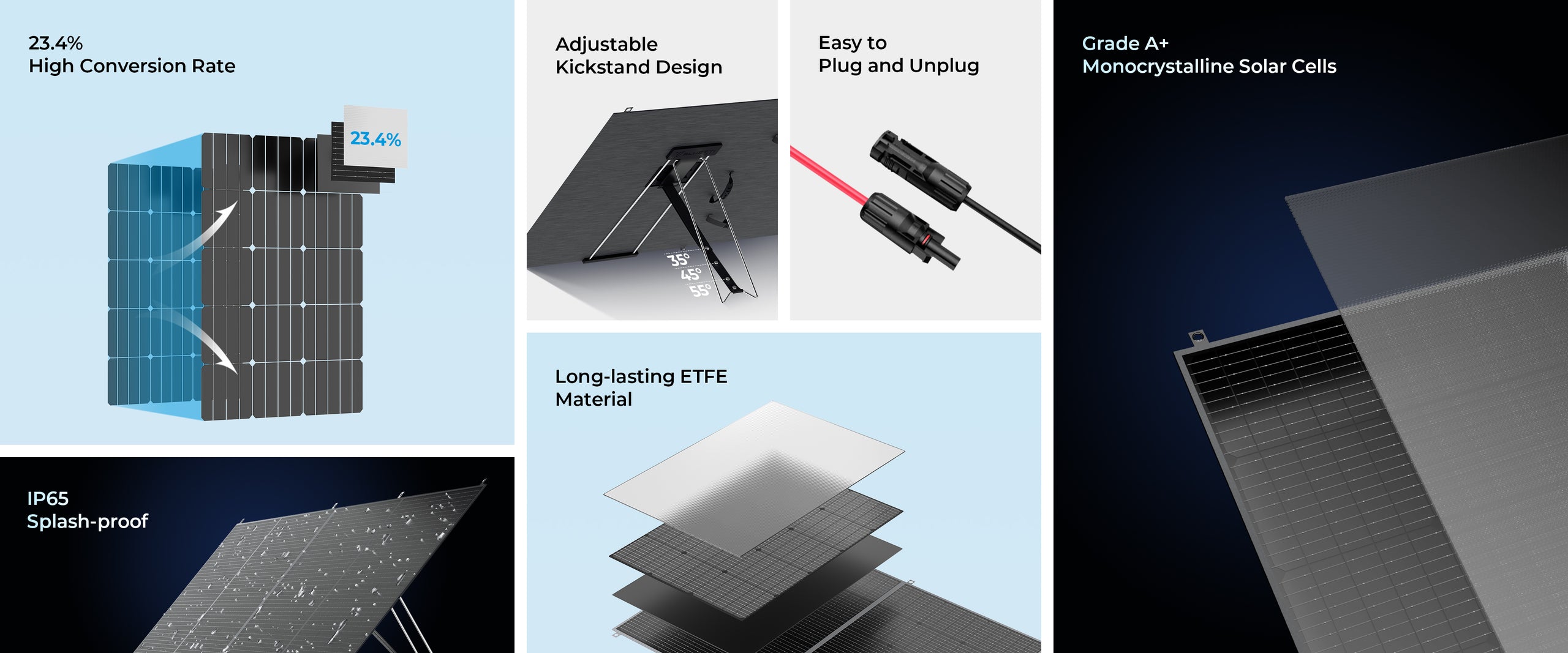 BLUETTI PV420 telah menjalani uji keandalan yang cukup dan menawarkan peringkat ketahanan air IP65. Namun demikian, untuk mendapatkan masa pakai yang lebih lama di lingkungan yang tepat, kami tidak menyarankan untuk menempatkannya dalam kontak langsung dengan hujan terlalu lama.