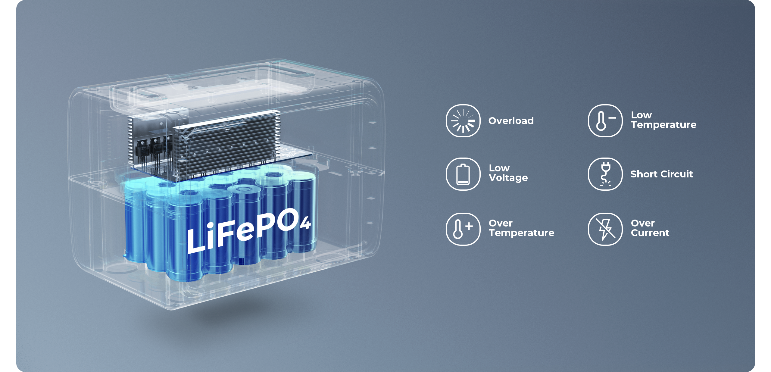 - Baterai LiFePO4 dengan 2.500+ Life Cycles hingga 80%;